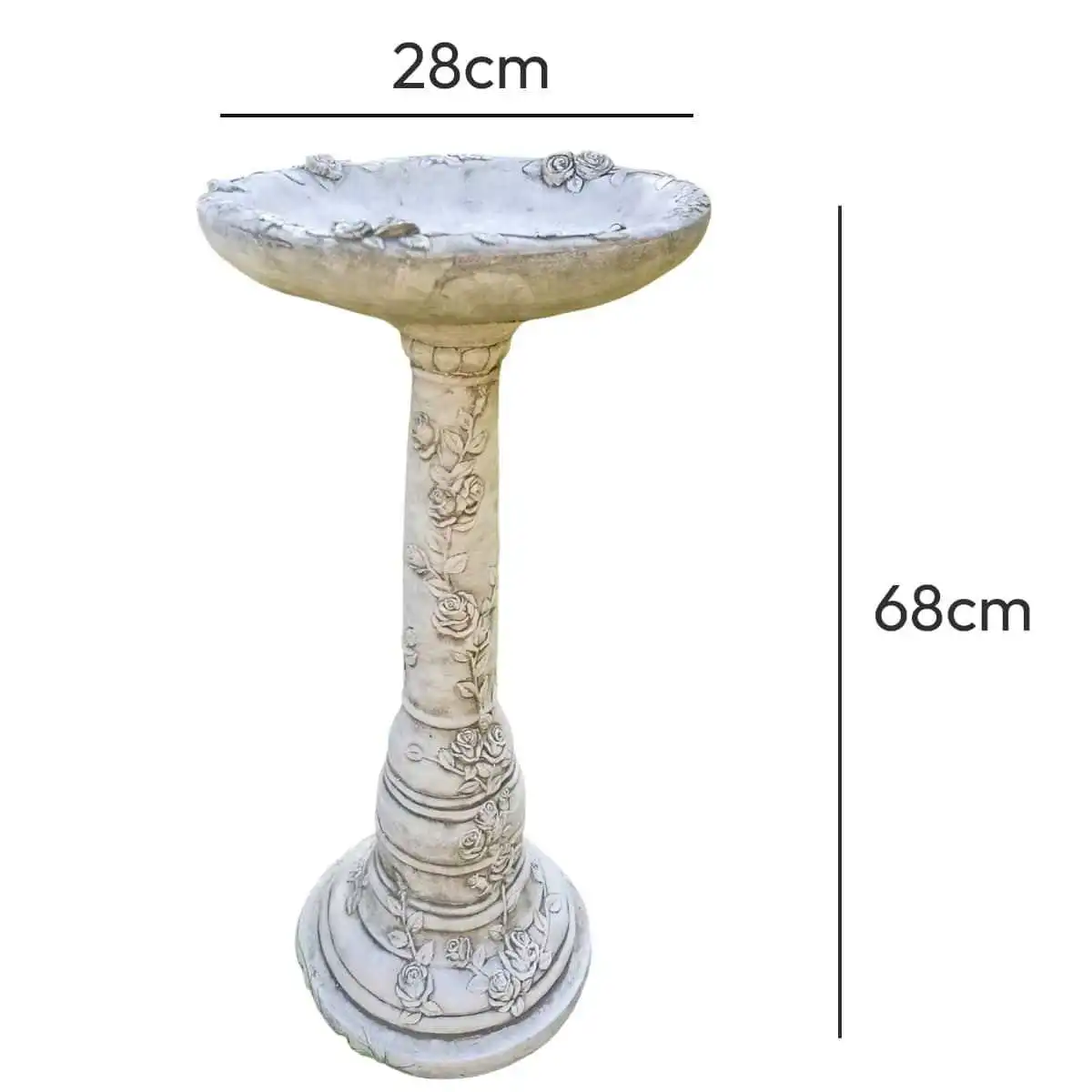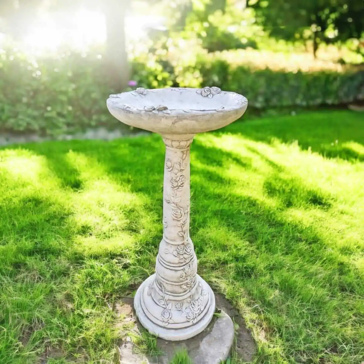 Abreuvoir à oiseaux sur pied imitation pierre Roses - D.28 x H.68 cm
