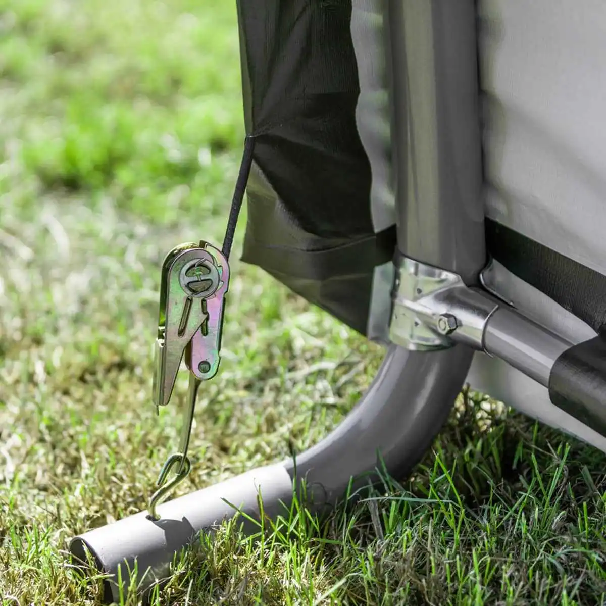 Un système de cliquets à tension maintient la toile tendue sur la charpente métallique. Il est donc facile d'ajuster la tension de la toile à tout moment.