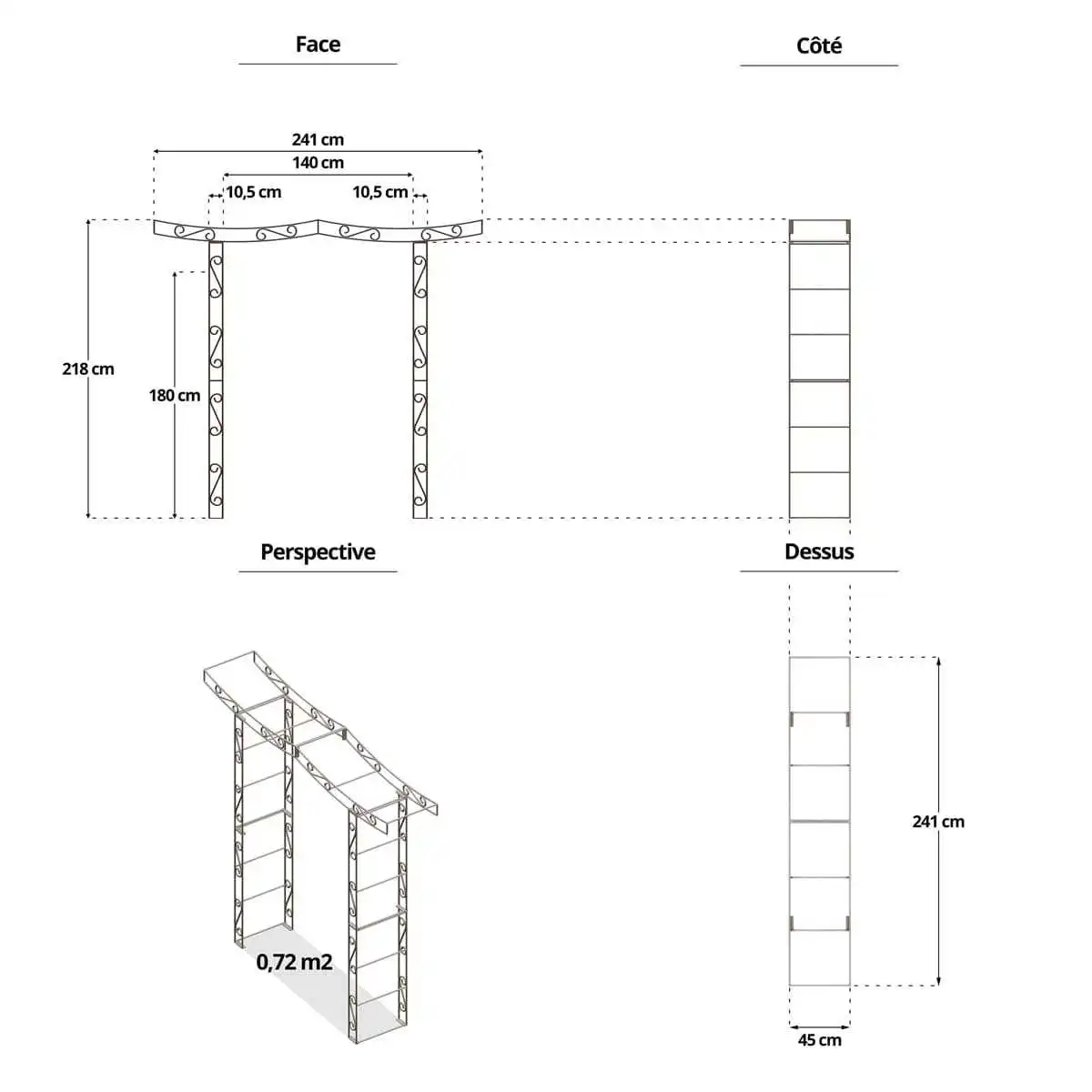 - Dimensions hors tout : larg. 241cm x haut. 218cm x prof. 45cm