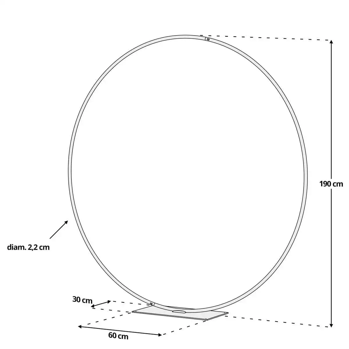 | Information | • Diamètre du tube en métal : 2,2cm • Platine de fixation : 30cm x 60cm (épaisseur 6mm) • La visserie pour ancrer l'arche au sol n'est pas fournie, elle est à choisir en fonction du type d'installation choisie |