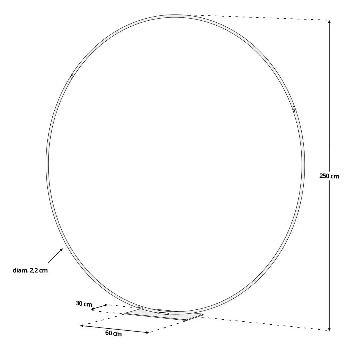 | Information | • Diamètre du tube en métal : 2,2cm • Platine de fixation : 30cm x 60cm (épaisseur 6mm) • La visserie pour ancrer l'arche au sol n'est pas fournie, elle est à choisir en fonction du type d'installation choisie |