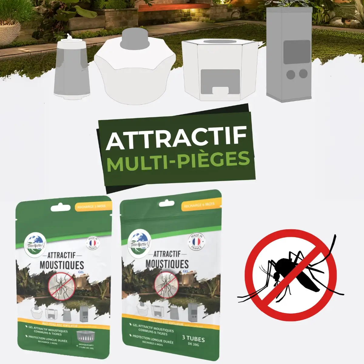 | 💊Traitement | Gel concentré à base d'octénol pour attirer les moustiques dans les pièges. |