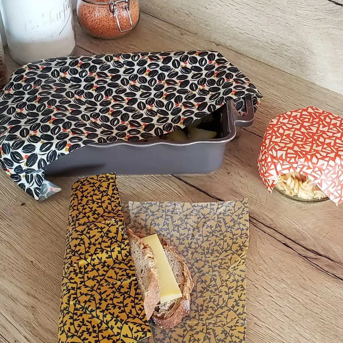 Paiements sécurisés - Lot de 3 Bee Wraps BIO - Emballage en tissu enduit ajustable et réutilisable