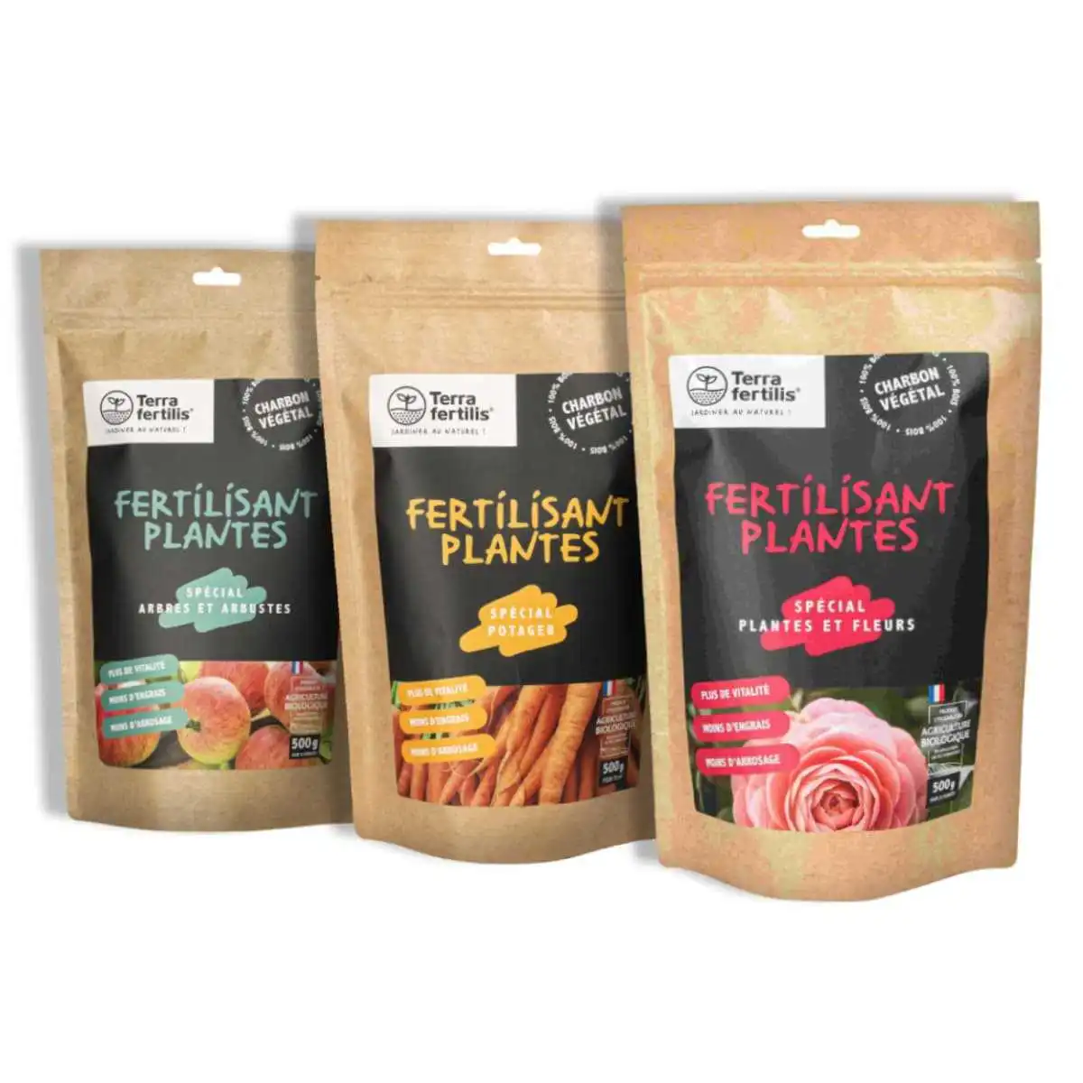 - 3 biostimulants au choix : spécial plantes et fleurs / spécial potager / spécial arbres et arbustes