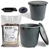 Bokashi Box Composteur de cuisine 10L - 1er prix - Lot de 2 seaux gris + 1 sac de son + pressoir + récupérateur de jus - D.29.5 x H.26 cm - Fabriqué en France