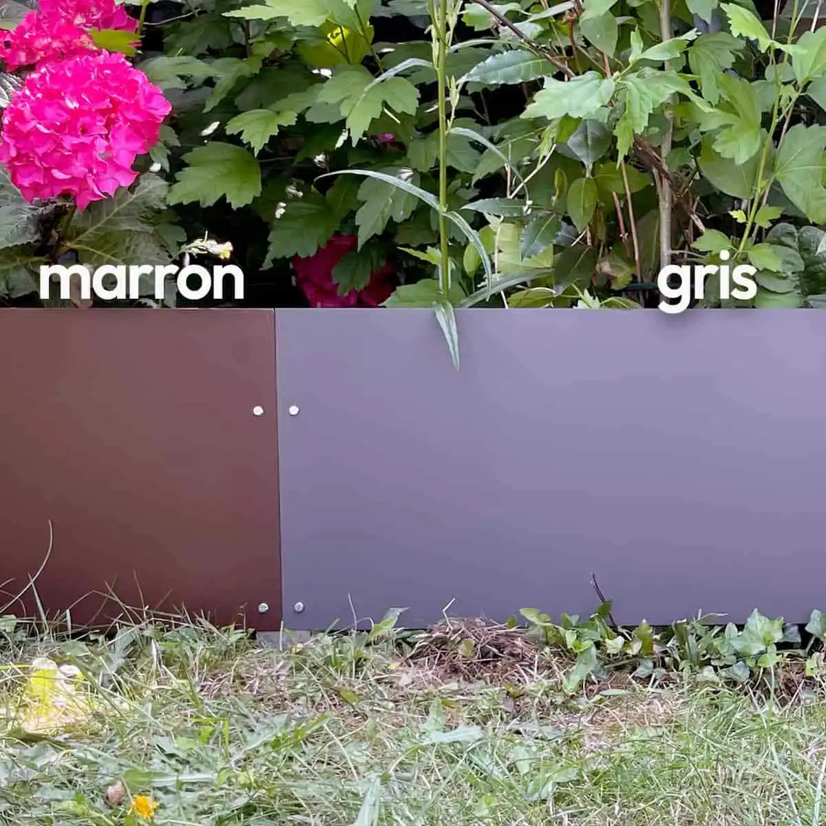 Fabriquées en acier galvanisé et recouvertes d'une peinture époxy, les bordures ne craignent ni la pluie, ni les UV. Inaltérables dans le temps, elles ne rouillent pas et résisteront de longues années aux aléas climatiques.