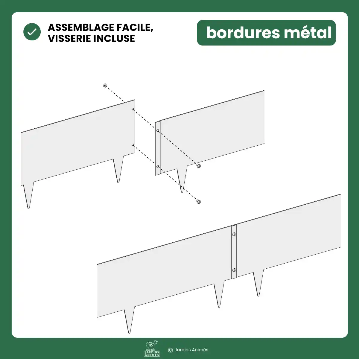 - Visserie incluse : 2 x M4x8 (tête peinte, écrou zinc blanc) par bordure