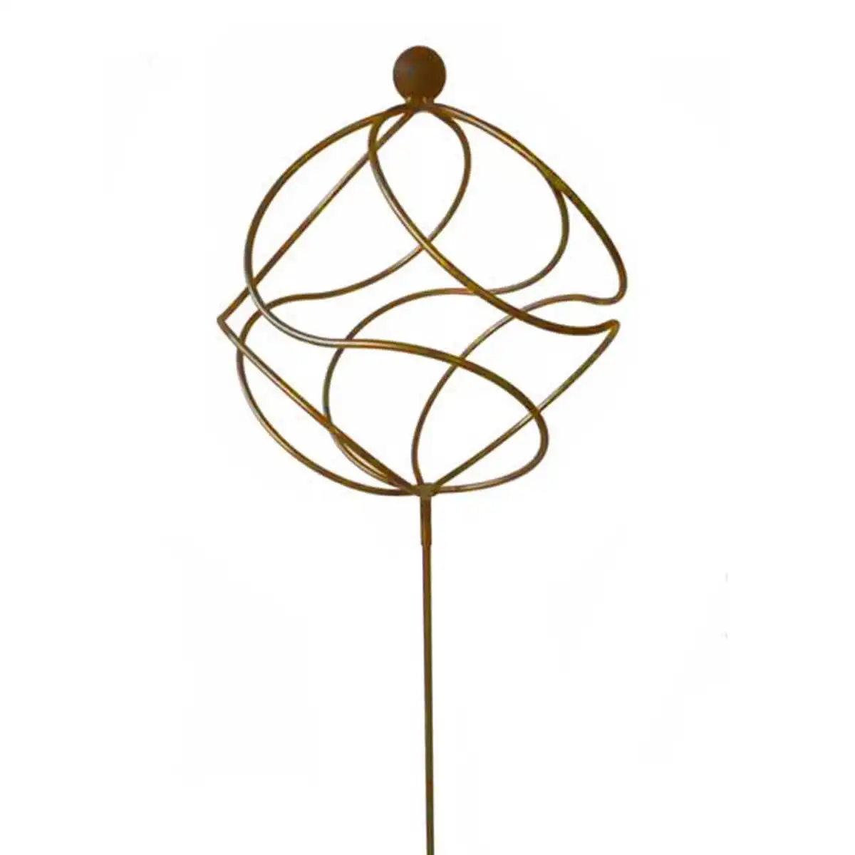 Le métal et le végétal forment un joli mariage. Utilisée comme tuteur, la boule embellira sobrement un coin de jardin.