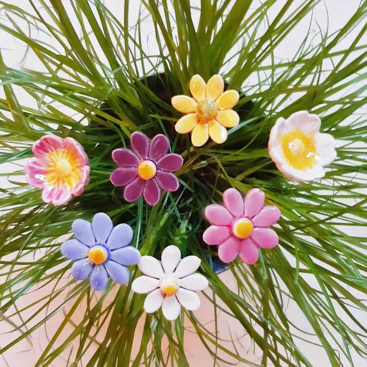 Bouquet de 7 fleurs en céramique sur tige à planter très bien dans la réalisation d'un petit bouquet de lumière