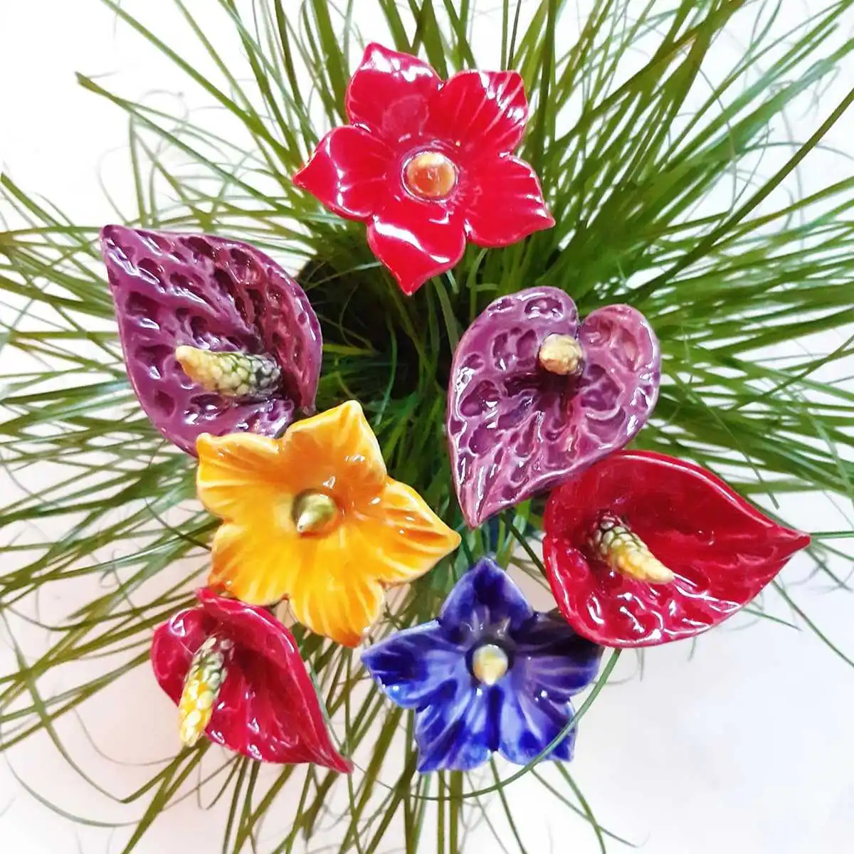 Bouquet de 7 fleurs en céramique sur tige à planter