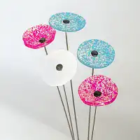 Bouquet 5 fleurs en verre artisanales Adèle - Jolie prairie - intérieur et extérieur Toutes en finesses, ces fleurs sont splendides, les couleurs chatoyantes. Ravie de mon achat. Plantées en pleine terre ça et là, au milieu d'un massif, le résultat est magnifique