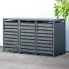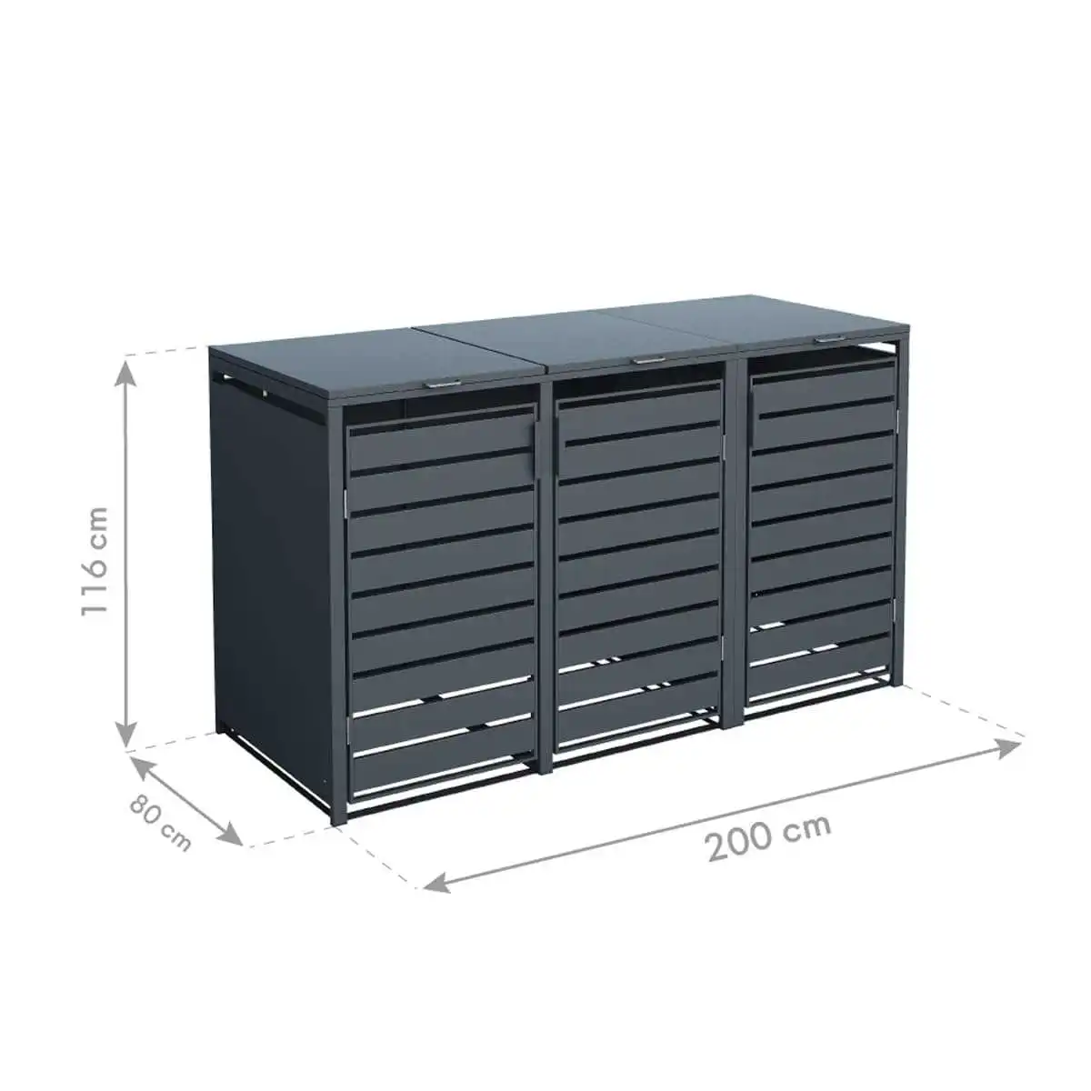 Ce cache poubelle en métal gris anthracite permet de ranger 3 poubelles.