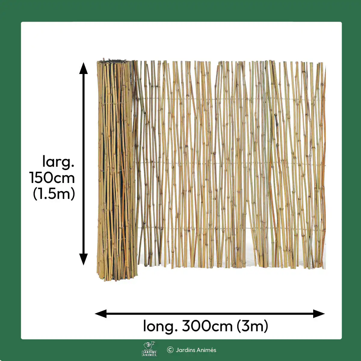 Canisse de bambou fendu 200 x 300cm Produit vraiment très bien surtout pour ces mesures 3m sur 2m de haut difficile de trouver. Je recommande