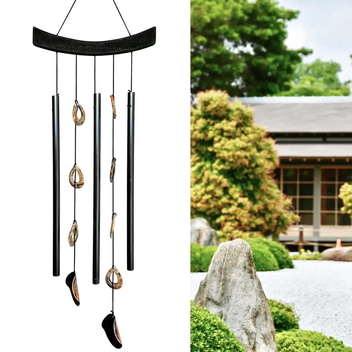 Ses 3 tubes s'animent au gré du vent, frappés délicatement par leurs coquillages, pour une musique naturelle qui invite à la détente.