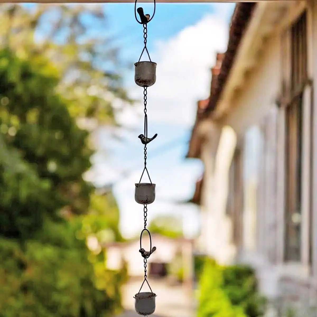 Agrémentée d'oiseaux et petits seaux en forme de chaudrons, elle est très efficace pour concentrer l'eau et la diriger vers le bas tout en apportant une touche décorative à votre extérieur !