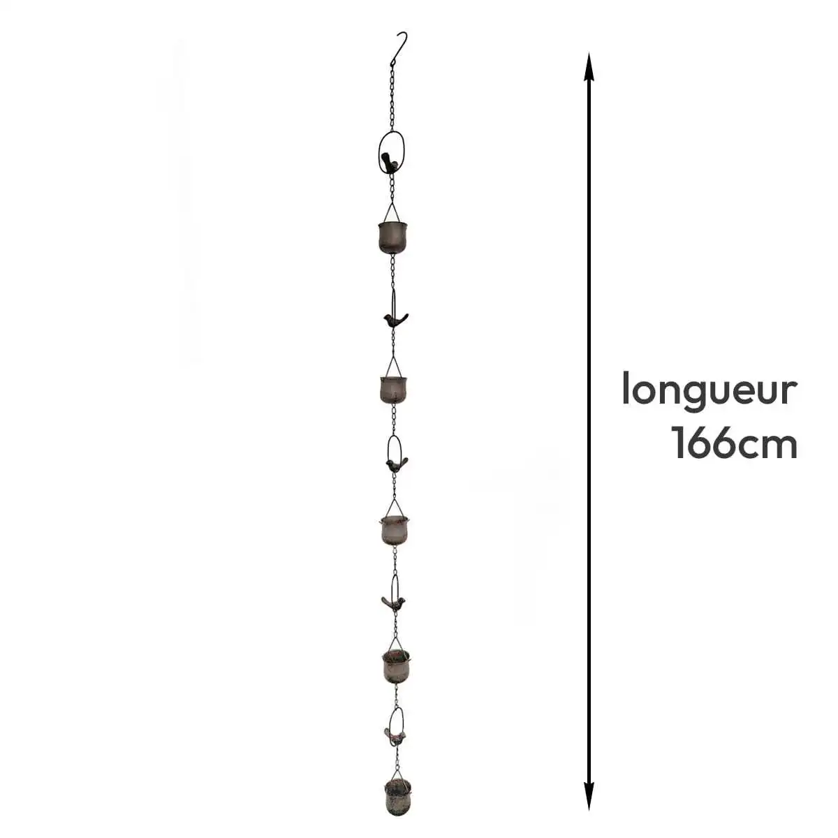 Chaine de pluie en métal Oiseaux et Chaudrons, patine bronze - L. 1,66m