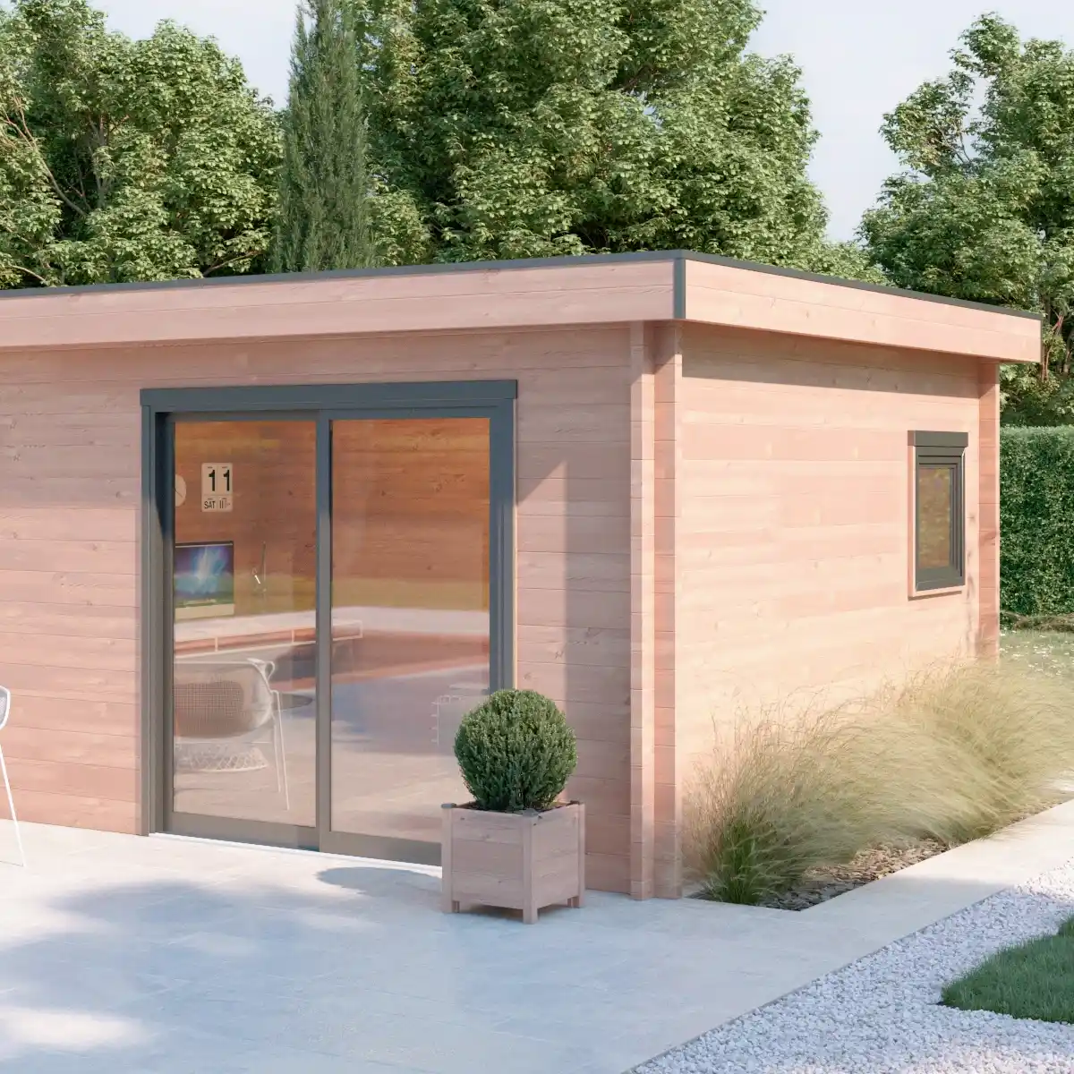 Chalet de jardin NANTUA 20m2 toit plat - Bois Douglas 55mm fabrication française L. 5,1 x l. 3,9 x H. 2,5m