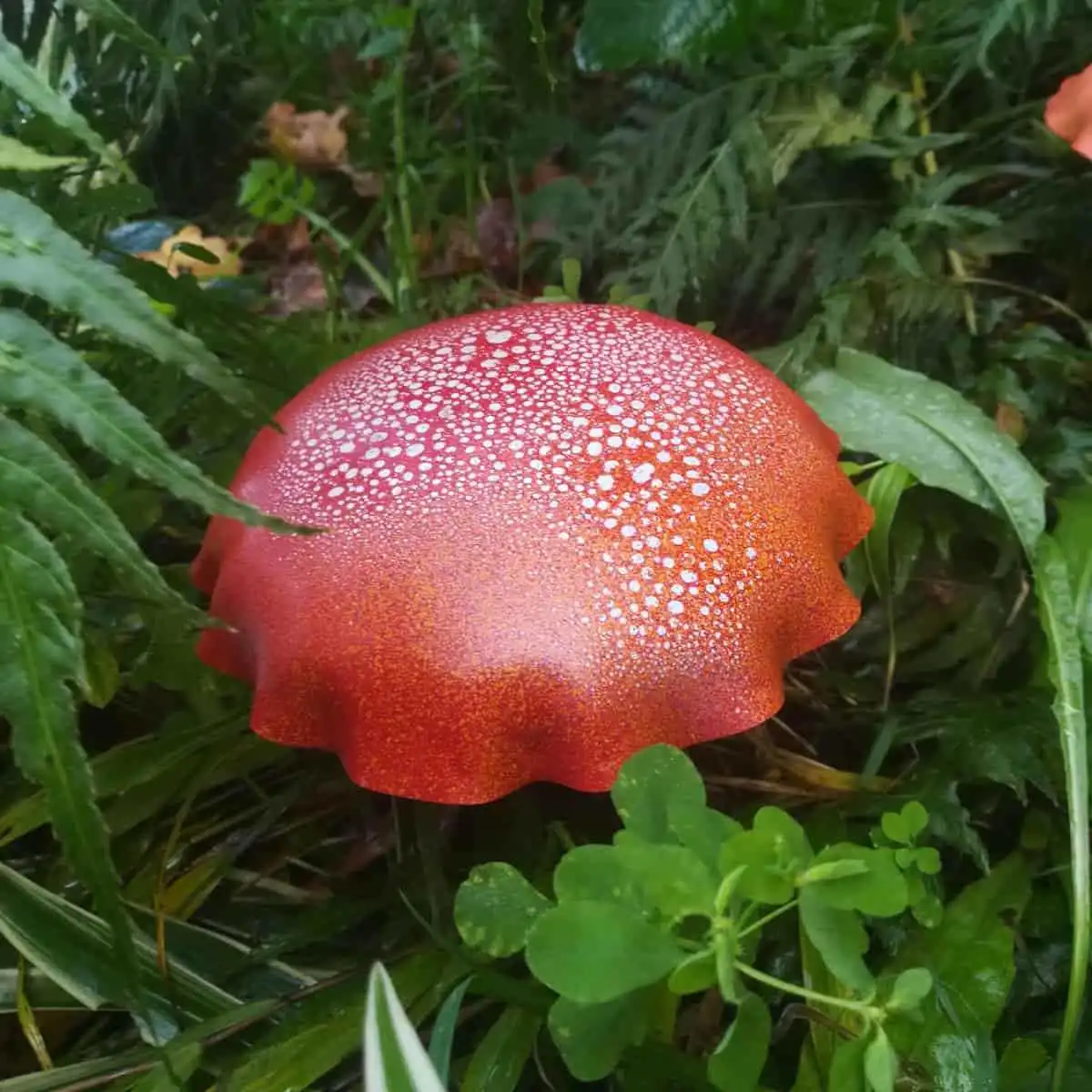 Champignon amanite rouge en acier - lot de 2 Les champignons sont très beaux et conformes à la description. Malheureusement je les avais commandé en Rouge et les je les aie reçu en Orange.