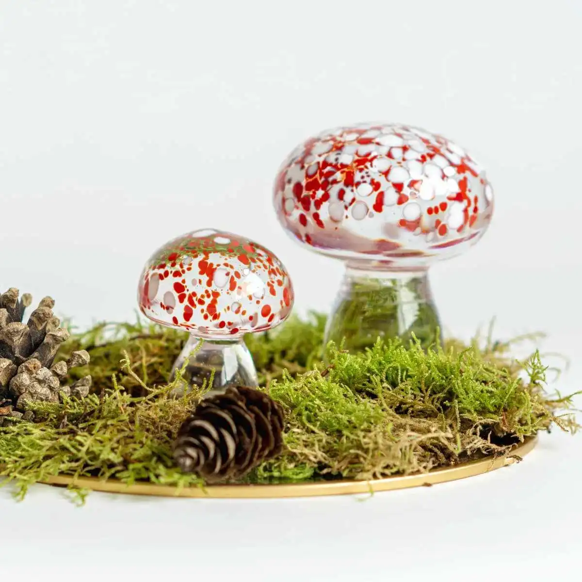 Laissez-vous séduire par ces amanites en verre soufflé. Réalisé de façon artisanale par notre artisane Julie, dans son atelier de soufflage de verre en Nouvelle-Aquitaine, ces créations contemporaines s'intègrent facilement dans votre intérieur.
