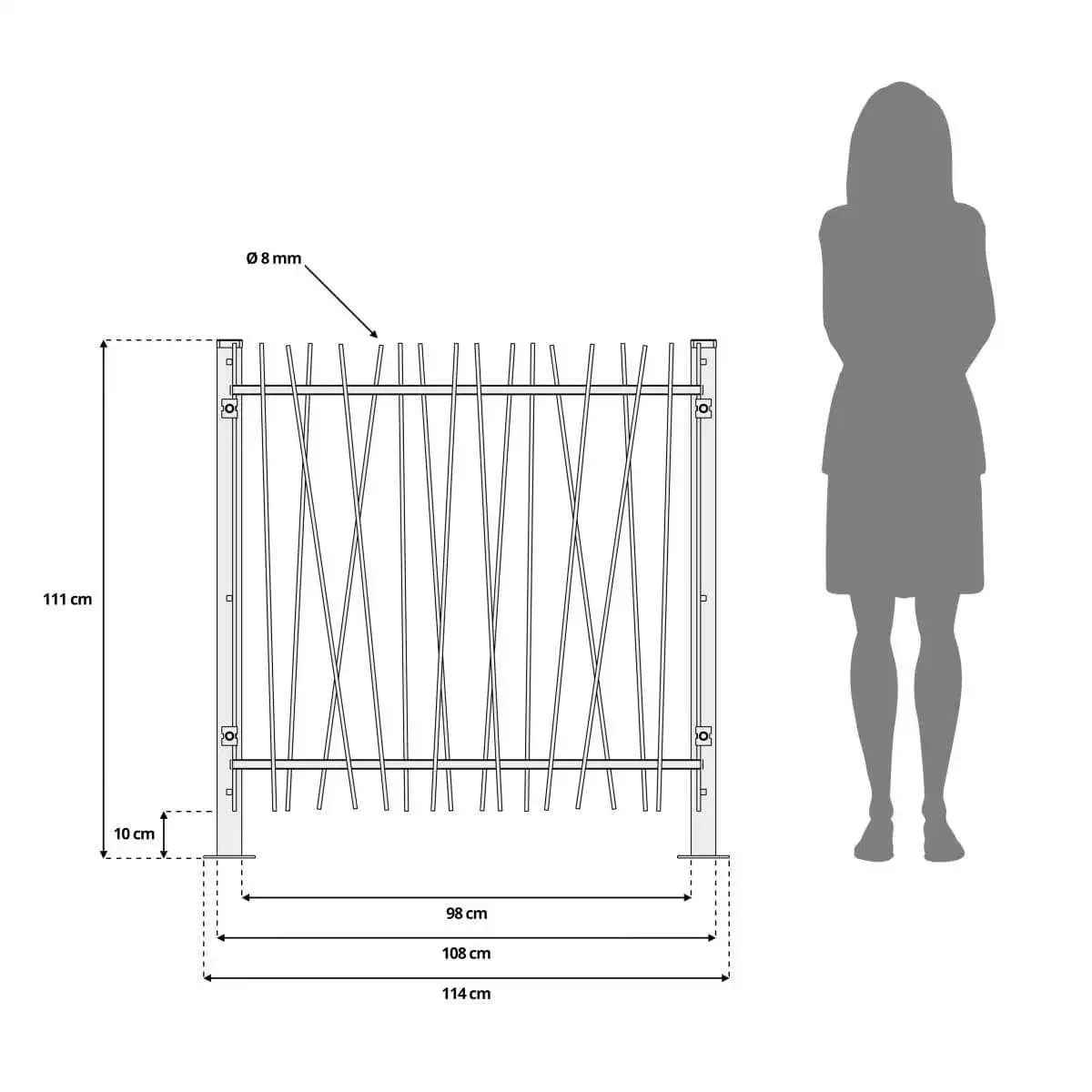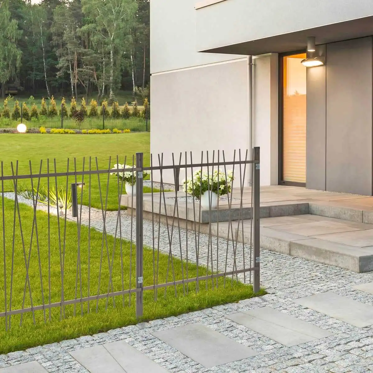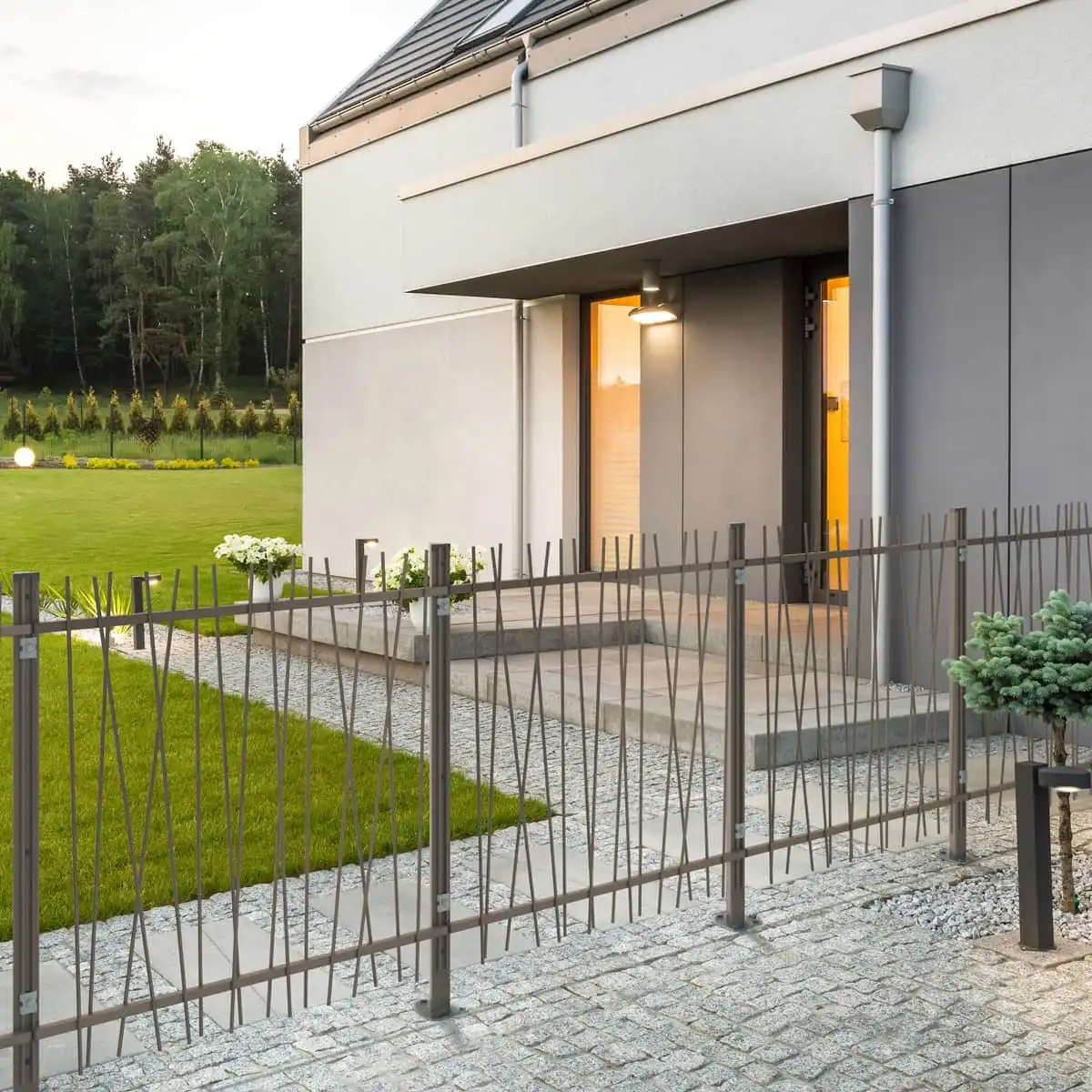 Cette clôture barreaudée en métal brun est parfaite pour délimiter votre jardin ou sécuriser une allée tout en conservant une touche décorative. Grâce à son barreaudage vertical irrégulier, elle joue sur les contrastes et apporte une esthétique contemporaine qui valorise vos extérieurs.