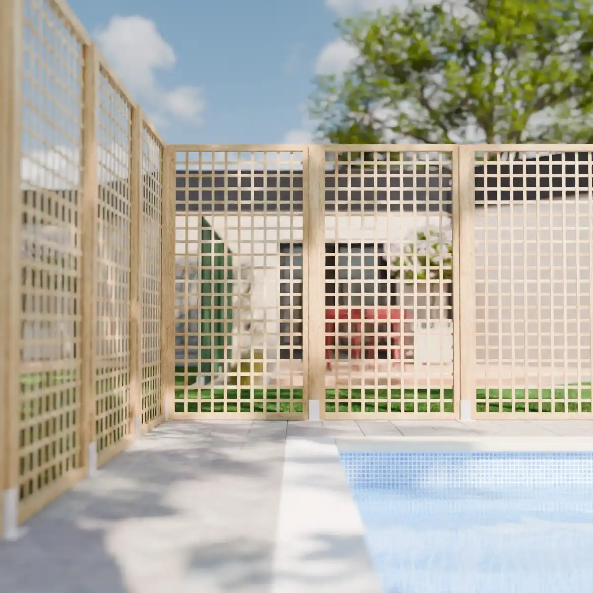 Véritables treillis de bois renforcés, ils s'intègrent naturellement dans différents aménagements, que ce soit en clôture pour terrasse, palissade, pour délimiter un espace de vie ou en séparation de jardin pour organiser les volumes sans les alourdir. Son dessin laisse passer la lumière tout en créant une vraie sensation d'intimité, idéale pour préserver le calme des lieux.