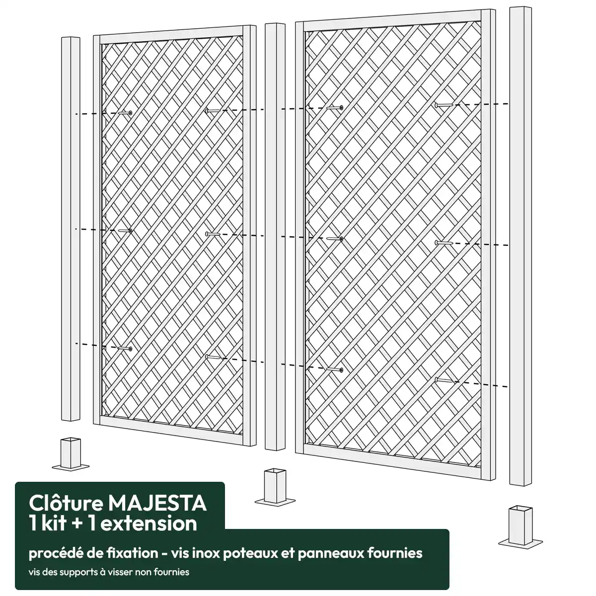 Clôture bois personnalisable Majesta - Panneau treillis premium avec cadre H.200cm