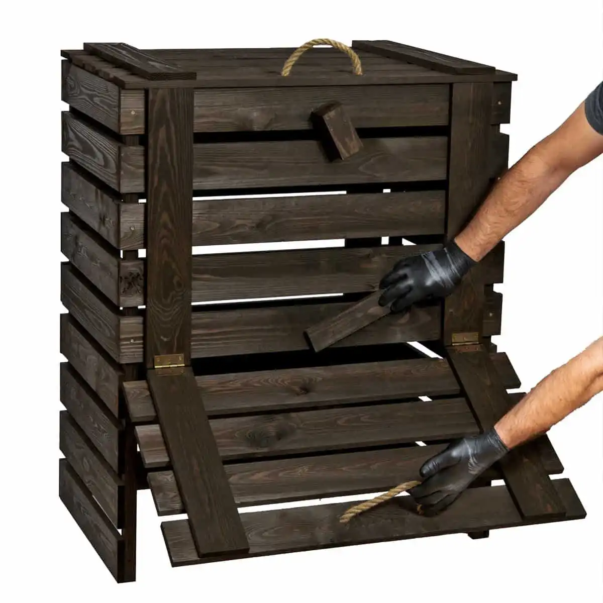 Transformez vos déchets organiques en un riche compost grâce à ce composteur en bois au design simple et fonctionnel.