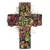 Paiements sécurisés Une croix garnie de végétaux et de pierres décoratives, prête à être posée ou suspendue. Utile pour la Toussaint.