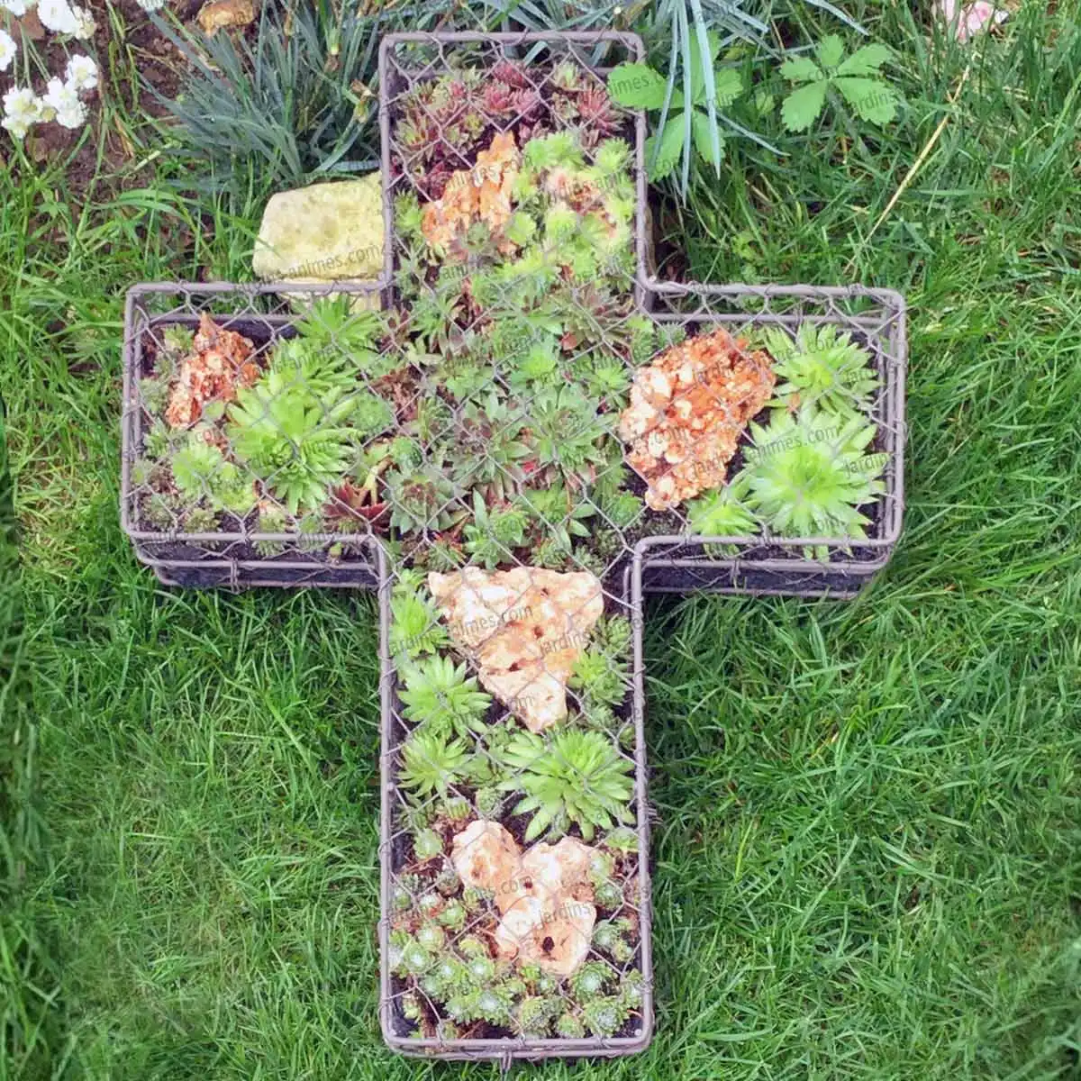 Croix funéraire GARNIE, en grillage à poule 47x34cm Tres sympa - les plantes etaient juste un peu petite par rapport à la photo
