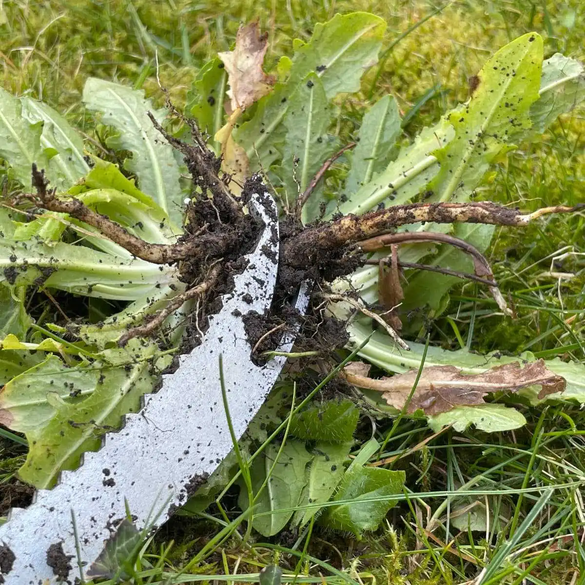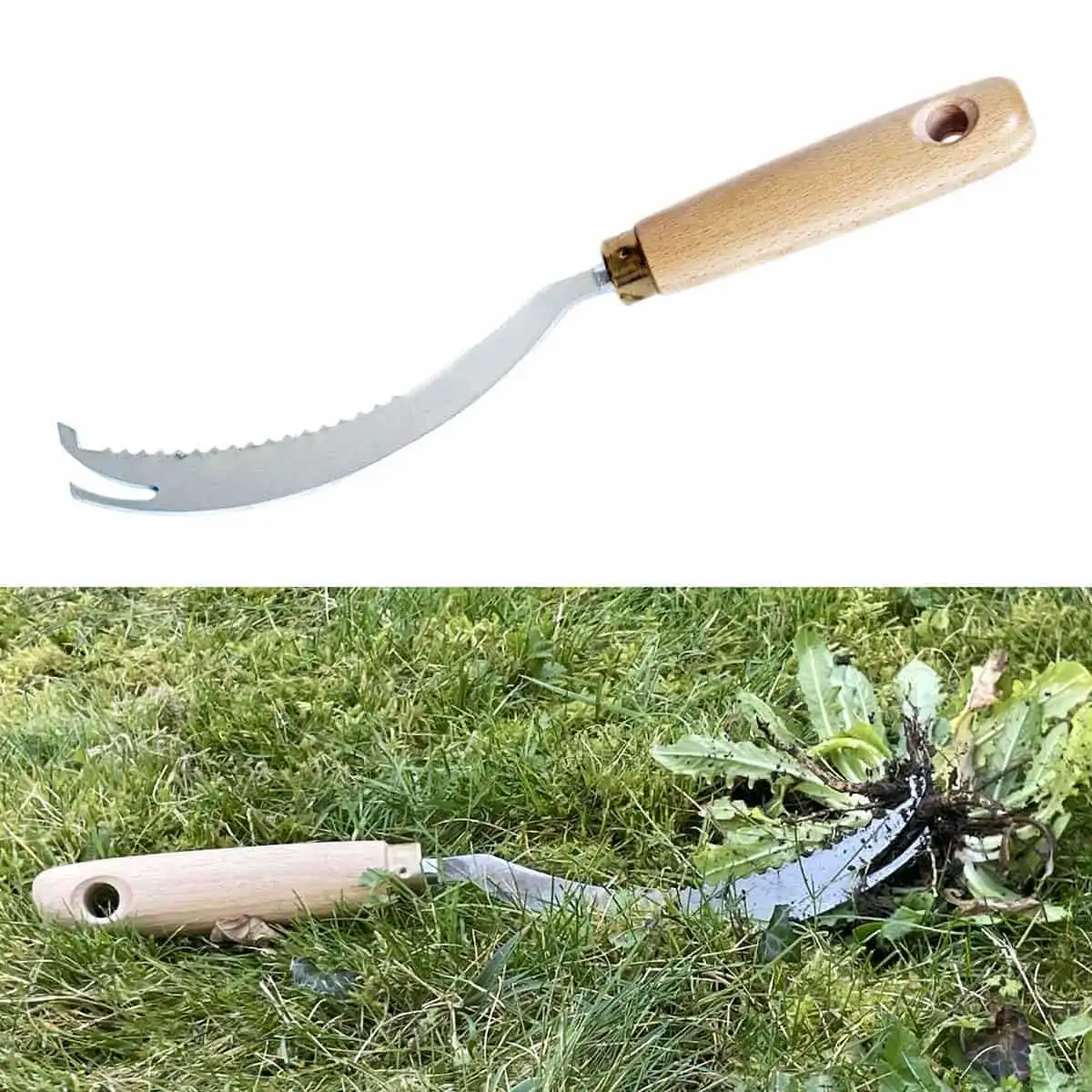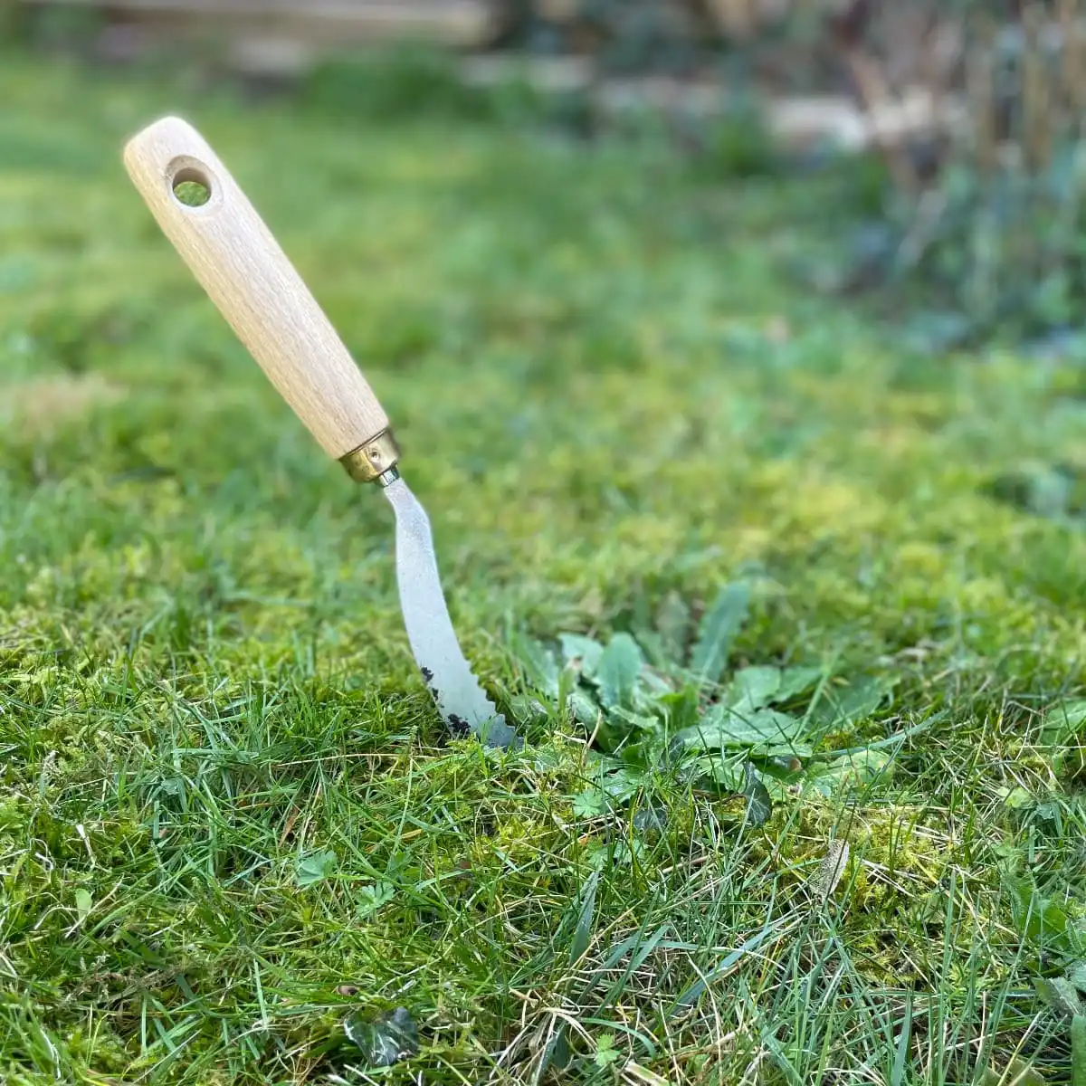 Ce couteau cranté est idéal pour désherber votre extérieur sans utiliser de produits chimiques nocifs pour l'environnement.