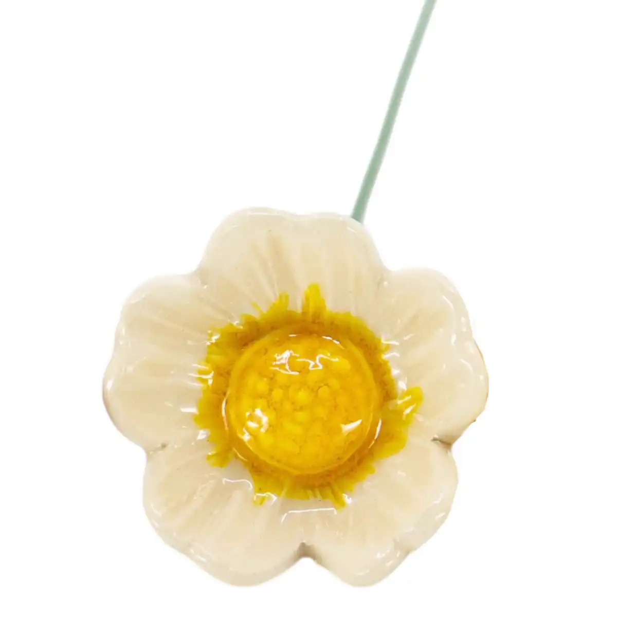 Eglantine blanc - Fleur en céramique sur tige à planter