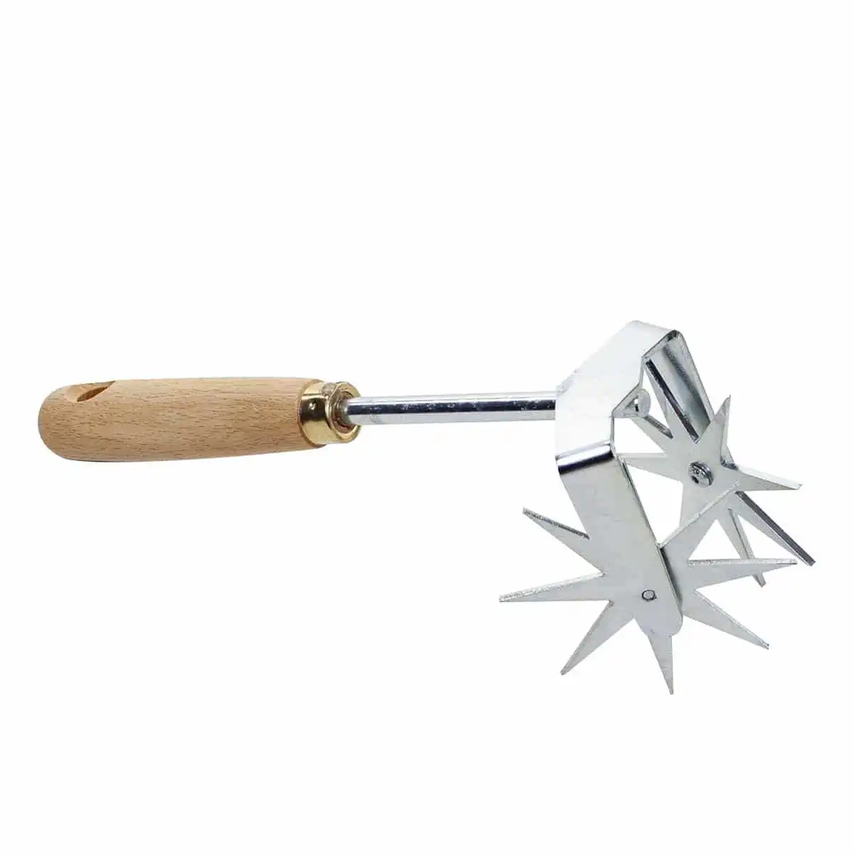 L'outil se compose de deux séries de dents en forme d'étoile aux pointes acérées dans un mécanisme qui agit par rotation. Le poids de la griffe rotative est idéal : juste ce qu'il faut pour bien tenir en terre pendant qu'on le fait tourner sur les surfaces à ameublir.