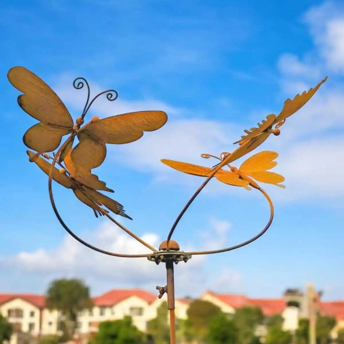 Invitez la légèreté et la grâce des papillons dans votre jardin avec cette éolienne décorative en métal rouillé. Chaque brise anime ce ballet aérien de papillons stylisés, semblant virevolter avec délicatesse.
