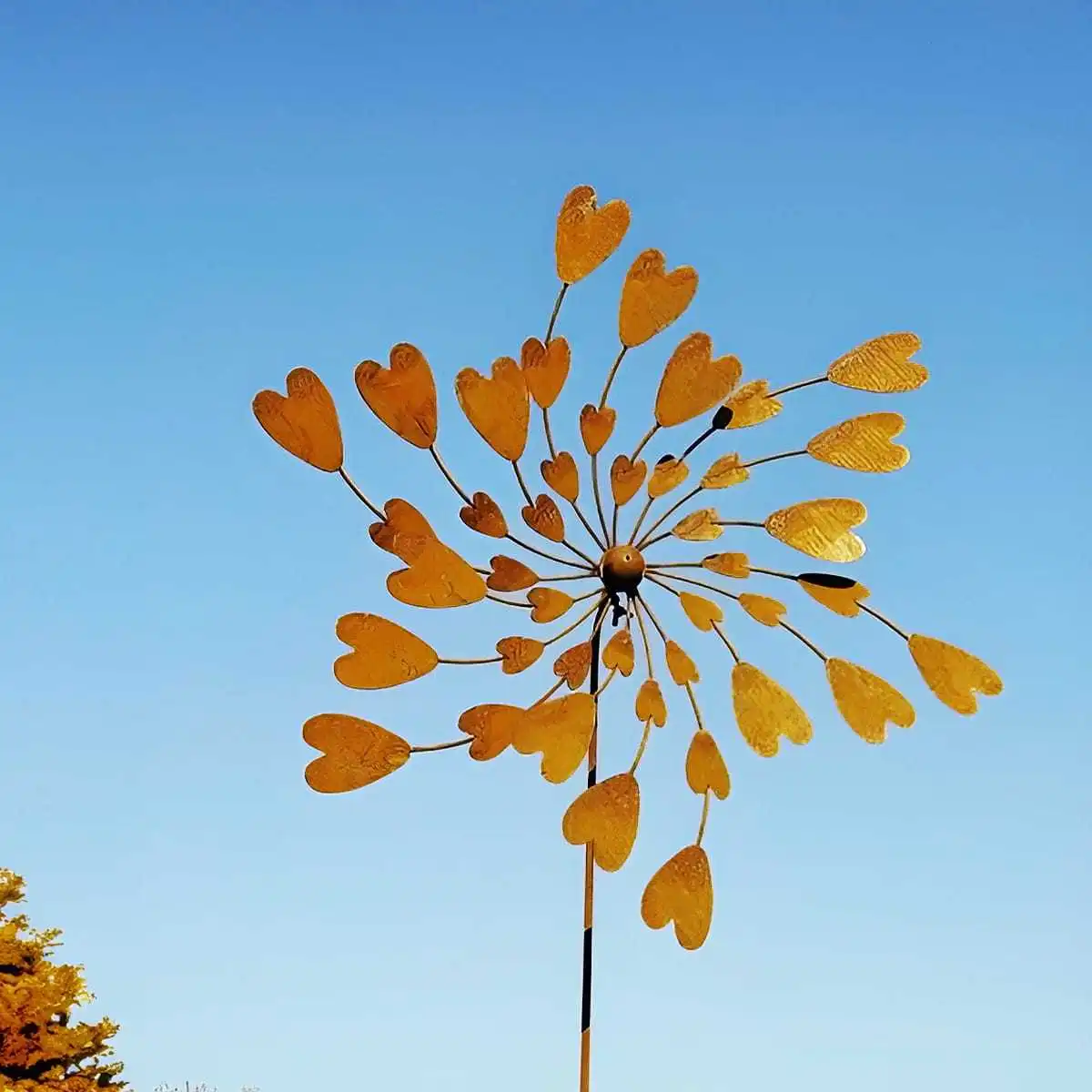 Éolienne de jardin en fer rouillé D.74 x H.140 cm - Coeurs