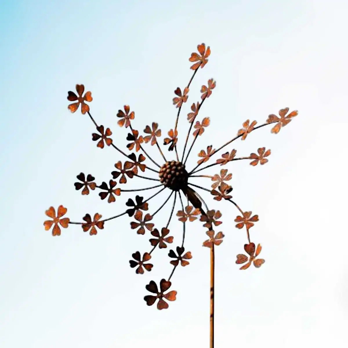 Avec sa finition à l'effet rouillé, ce joli mobile s'accorde parfaitement dans le jardin. Installez-le au milieu d'un massif, sur la pelouse ou près du potager pour un effet animé et fantaisiste.