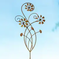 Éolienne de jardin en fer rouillé D.55 x H.145 cm - Fleurs et papillons Bonjour. Je suis ravie! Superbe effet dans mon jardin: aéré et élégant! L'éolienne réagit dès qu'il y a du vent! Formidable!
