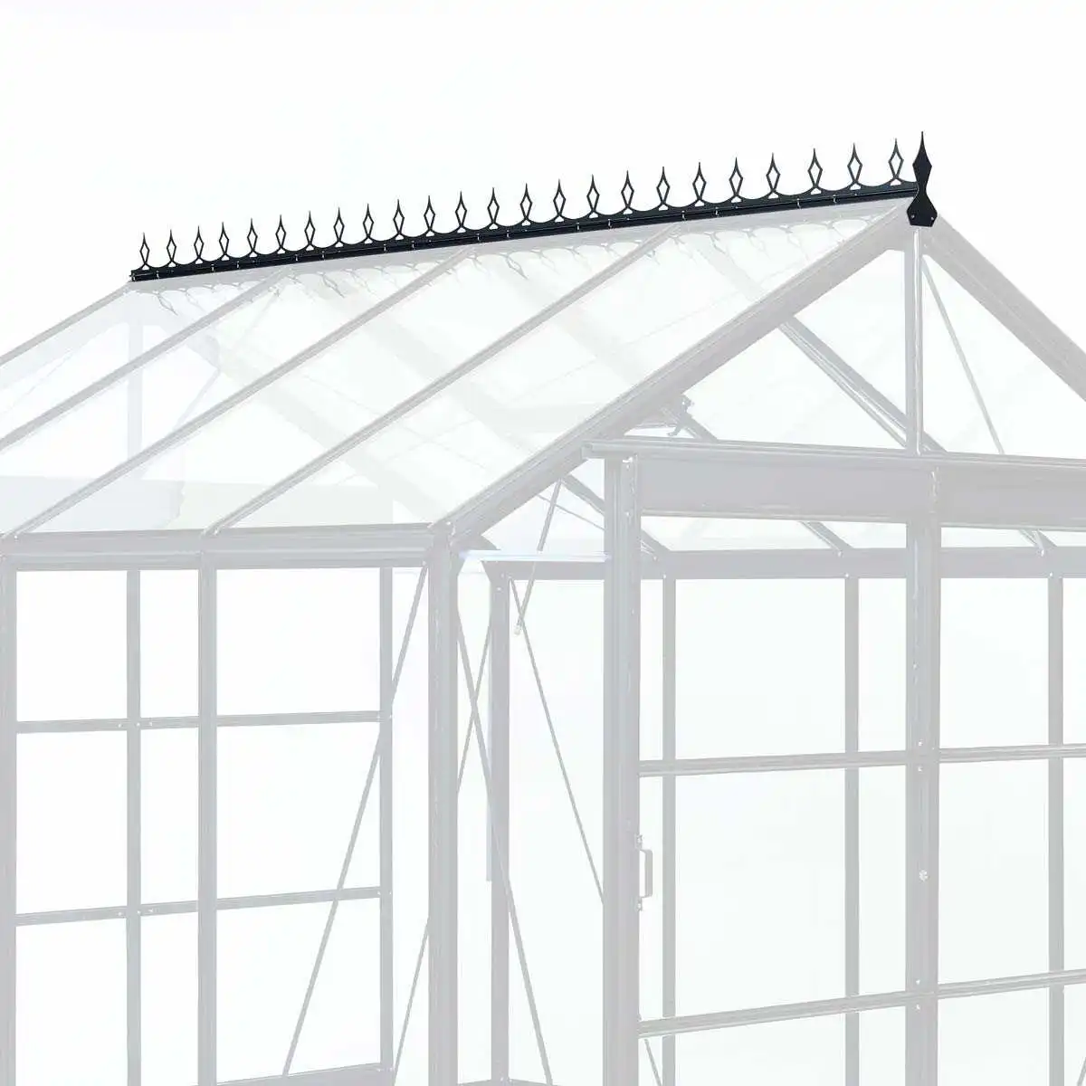 Tout en aluminium laqué en noir, cette faîtière donne du style à votre serre tout en dissuadant les oiseaux de se poser sur le faitage.