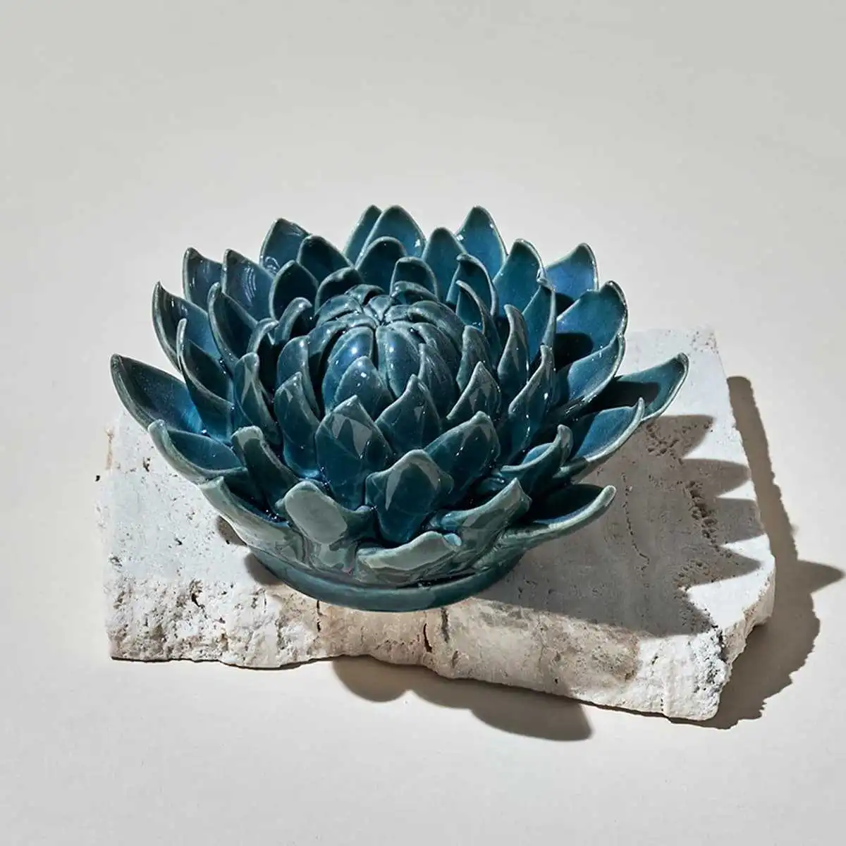 Fleur en céramique Dahlia 11cm - Bleu canard tres jolie fleur succulente tres originale et jolie couleur bleu canard