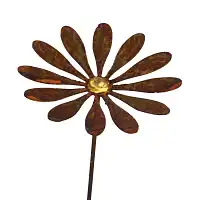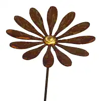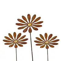 Fleur de marguerite à planter en métal rouillé J'ai acheté plusieurs modèles de fleurs en métal rouillé qui sont du plus bel effet dans mon jardin. La qualité est là. Je pense que j'en commanderai d'autres prochainement.
