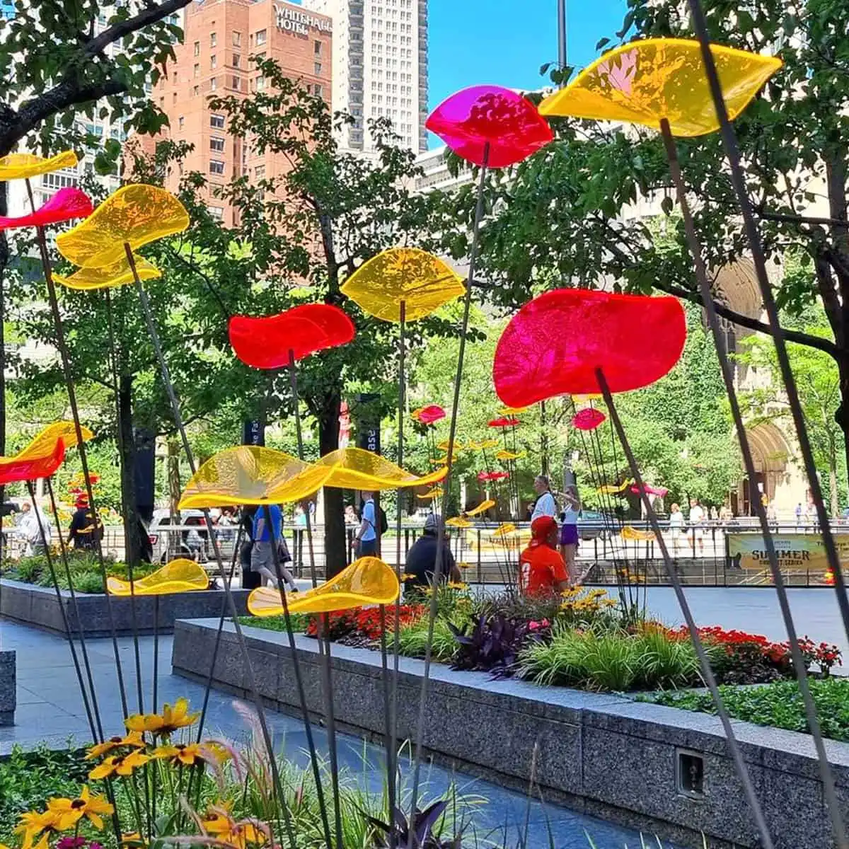 La fleur est résistante aux UV et ne décolore pas, même par fort ensoleillement. Le verre acrylique dont elle est composée résiste à une grande chaleur (+120°) et également au froid extrême (résistant au gel jusqu'à -50°). La fleur peut facilement passer l'hiver dehors.