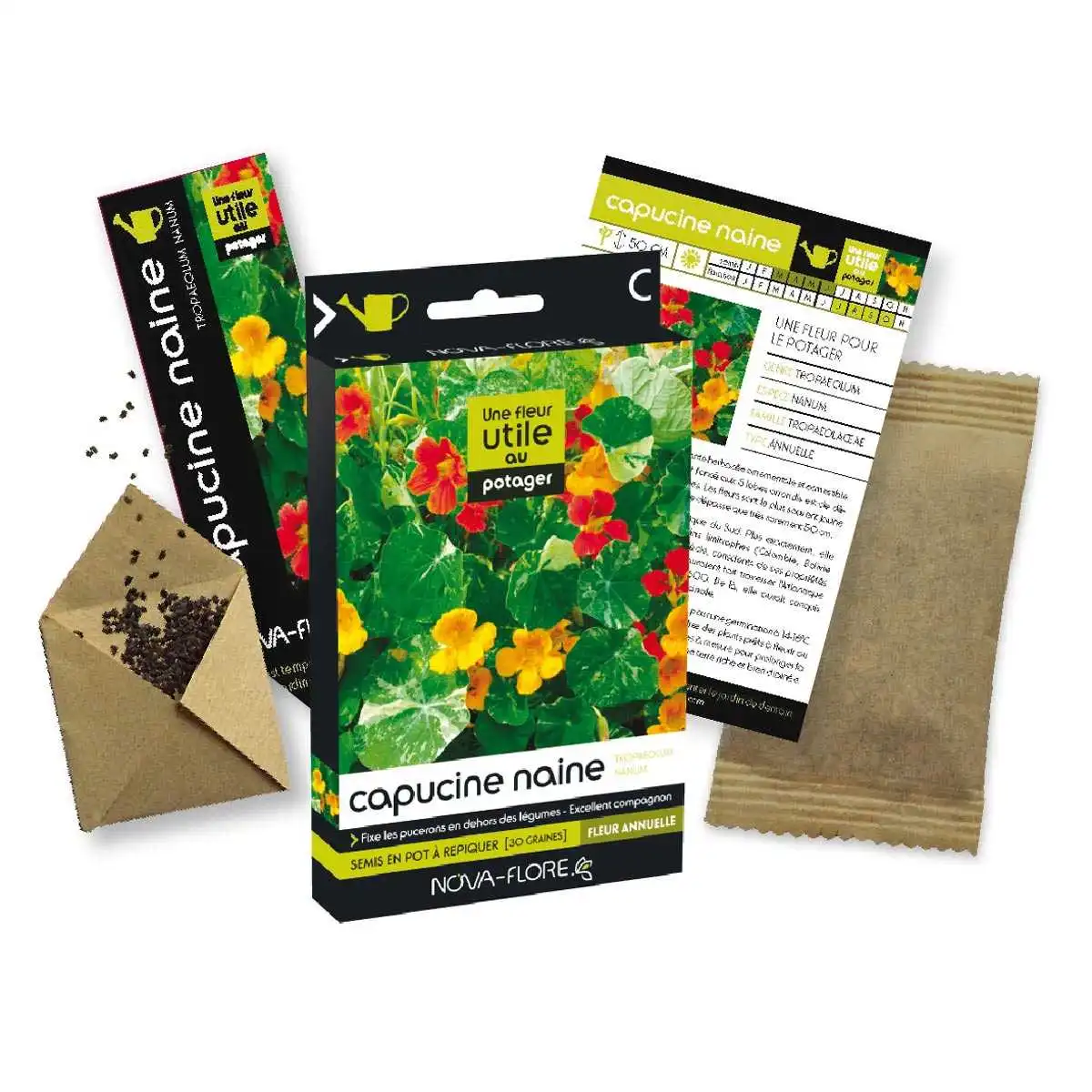 La graine de Capucine naine agit en faveur de la biodiversité pour préserver l'environnement, en attirant les auxiliaires utiles.