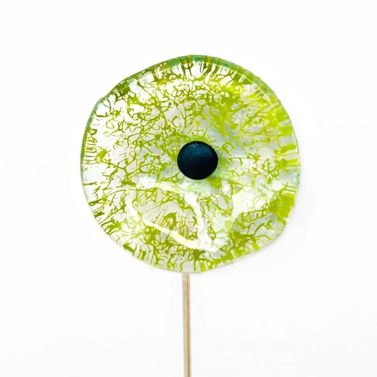 Fleur en verre artisanale Adèle - Vert clair moucheté D.4,7cm