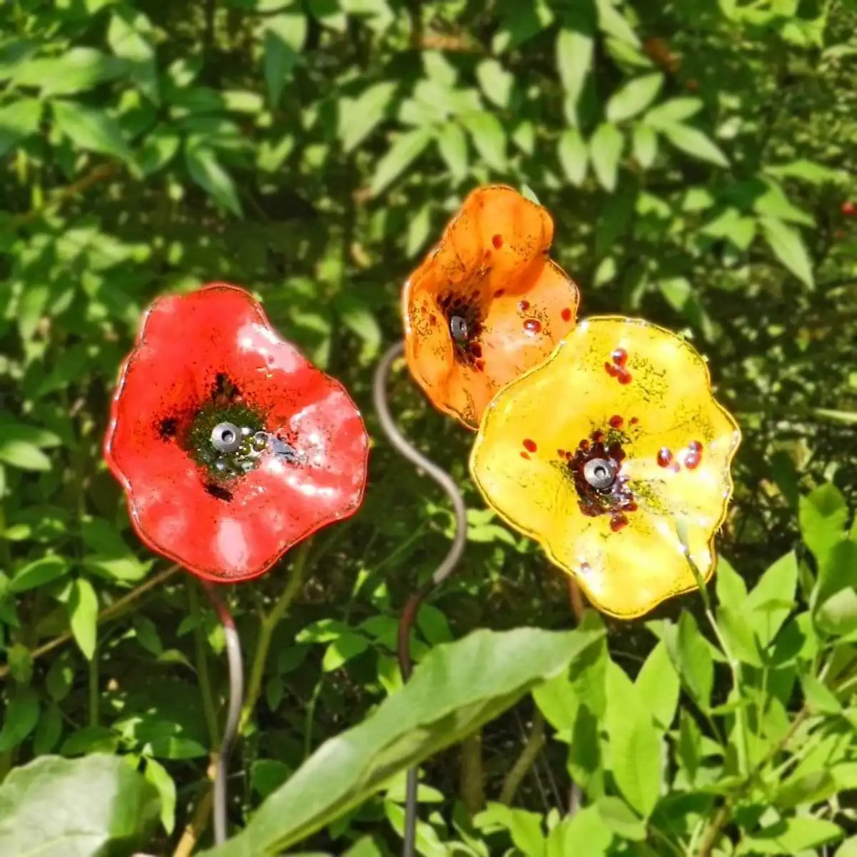 Fleur Coquelicot 3 modeles au choix Des fleurs en verre dans mes parterres de fleurs se marient parfaitement et ne se fanent pas. J'ai déjà passé 3 commandes...