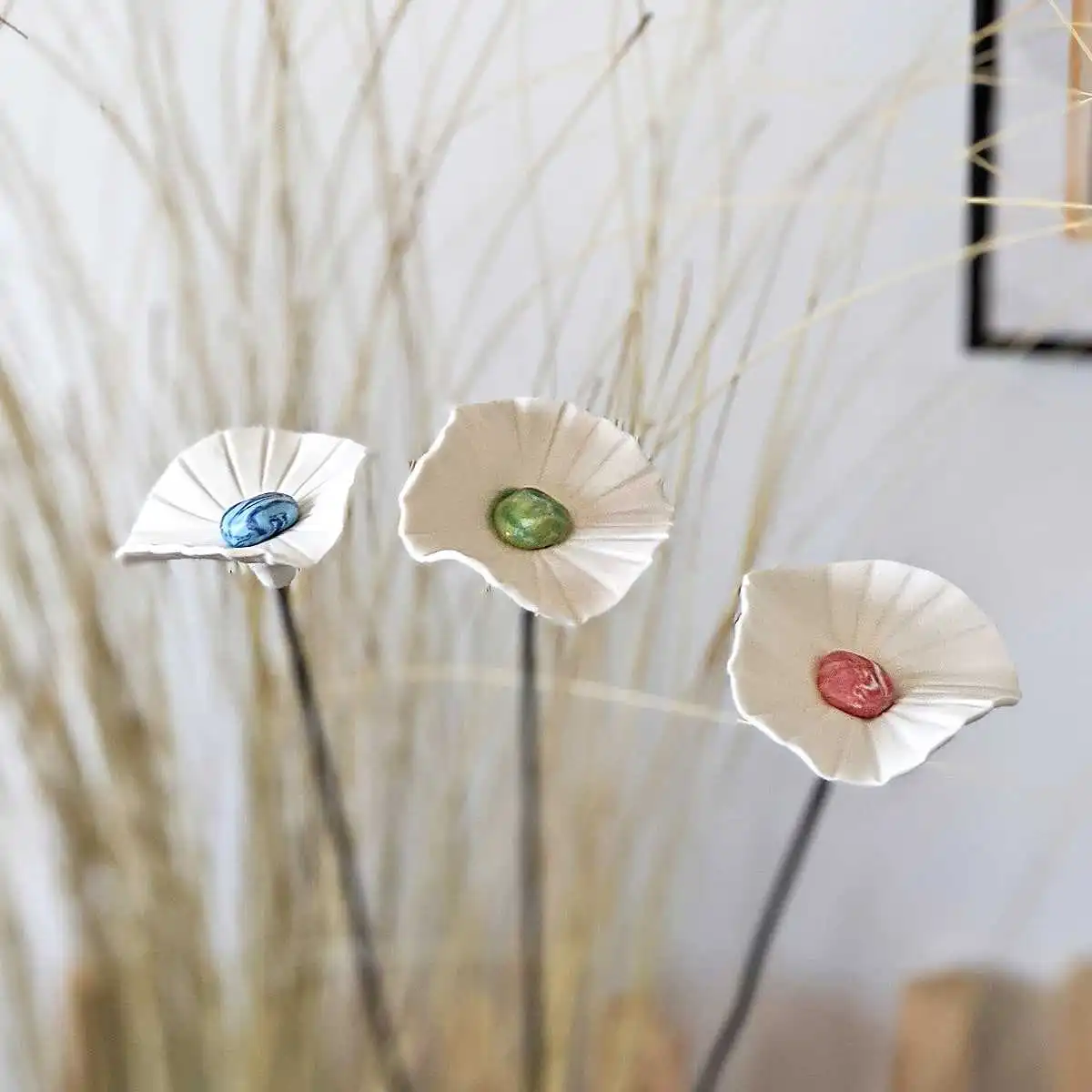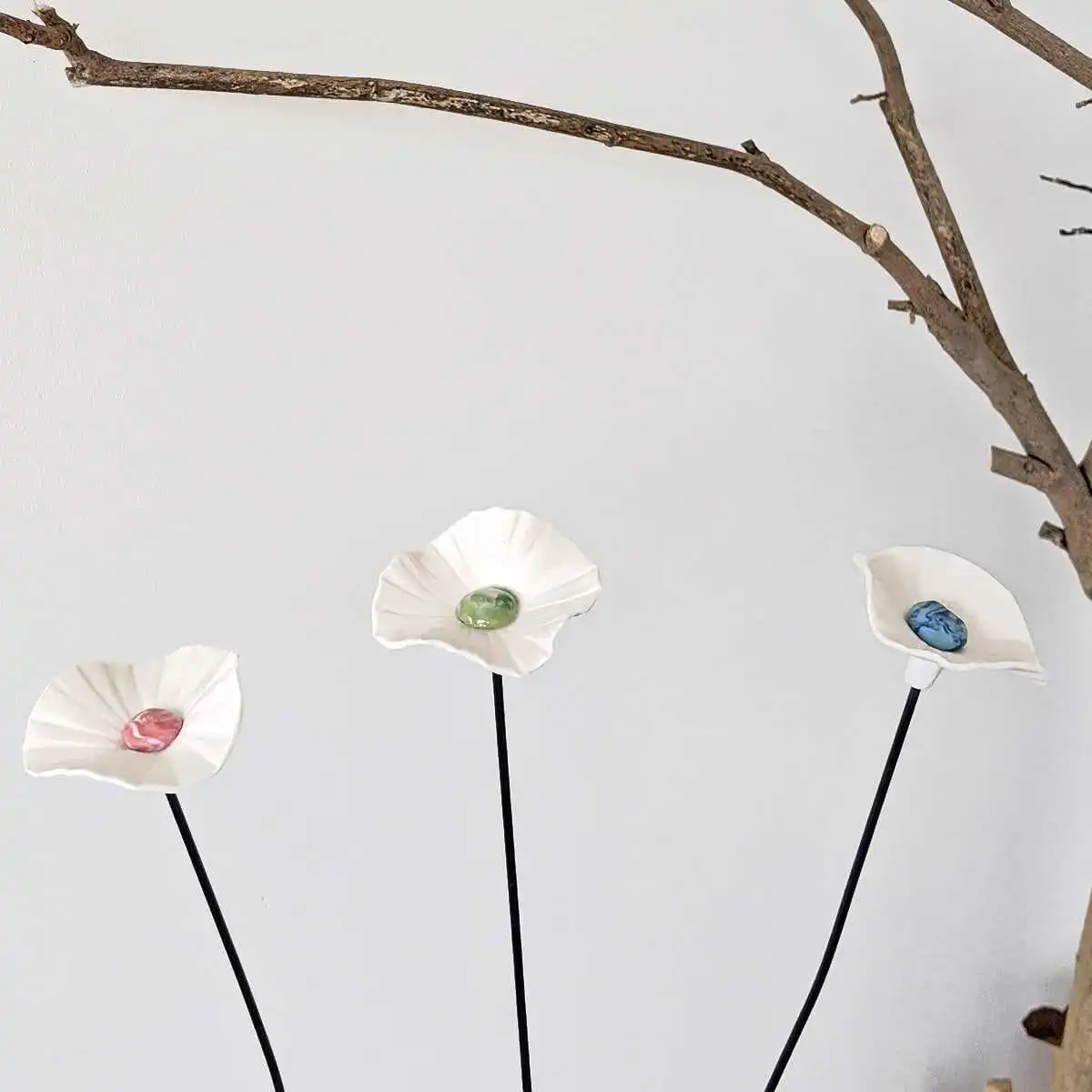 Ces superbes fleurs en céramique constituent une décoration unique pour apporter une touche d'originalité à votre intérieur ou vos compositions florales.