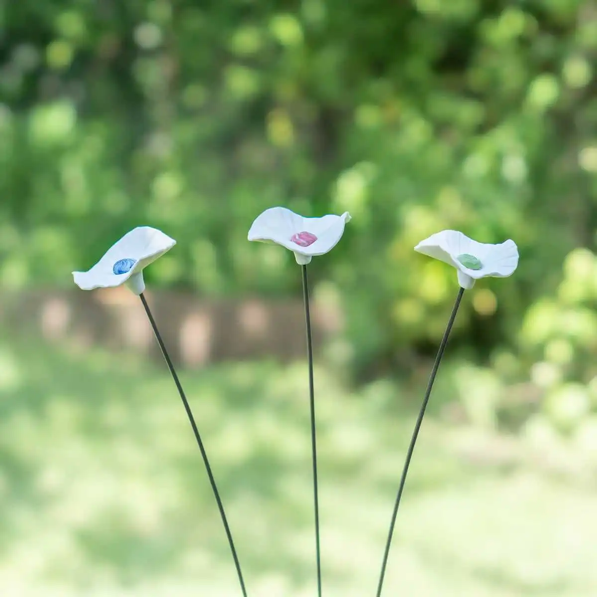 - Lot de 3 fleurs en céramique blanche avec tige de support adaptée
