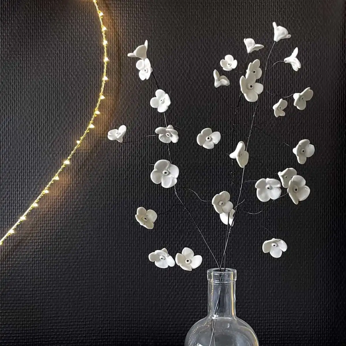 Fleurs de porcelaine sur branche en acier - 45cm Qu'elles sont poétiques ces petites fleurs ! J'adore. Le rendu est très délicat et a fait extrêmement plaisir à la personne à qui je les ai offertes.