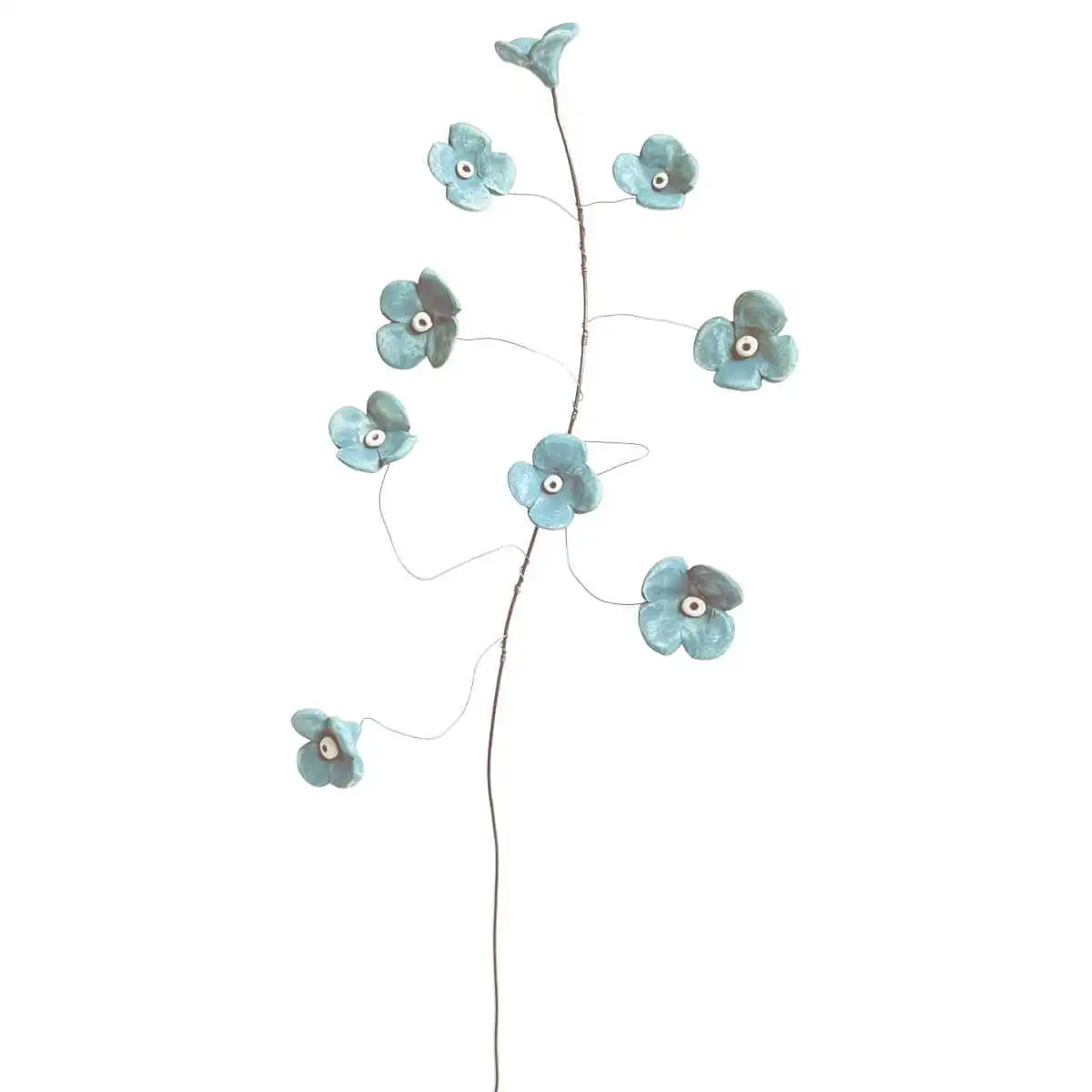 Fleurs de porcelaine sur branche en acier - Bleu clair