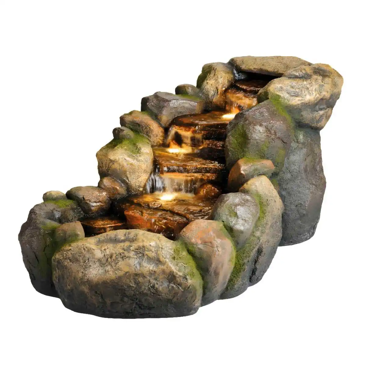 - Fontaine lumineuse en polyrésine imitant la roche.
