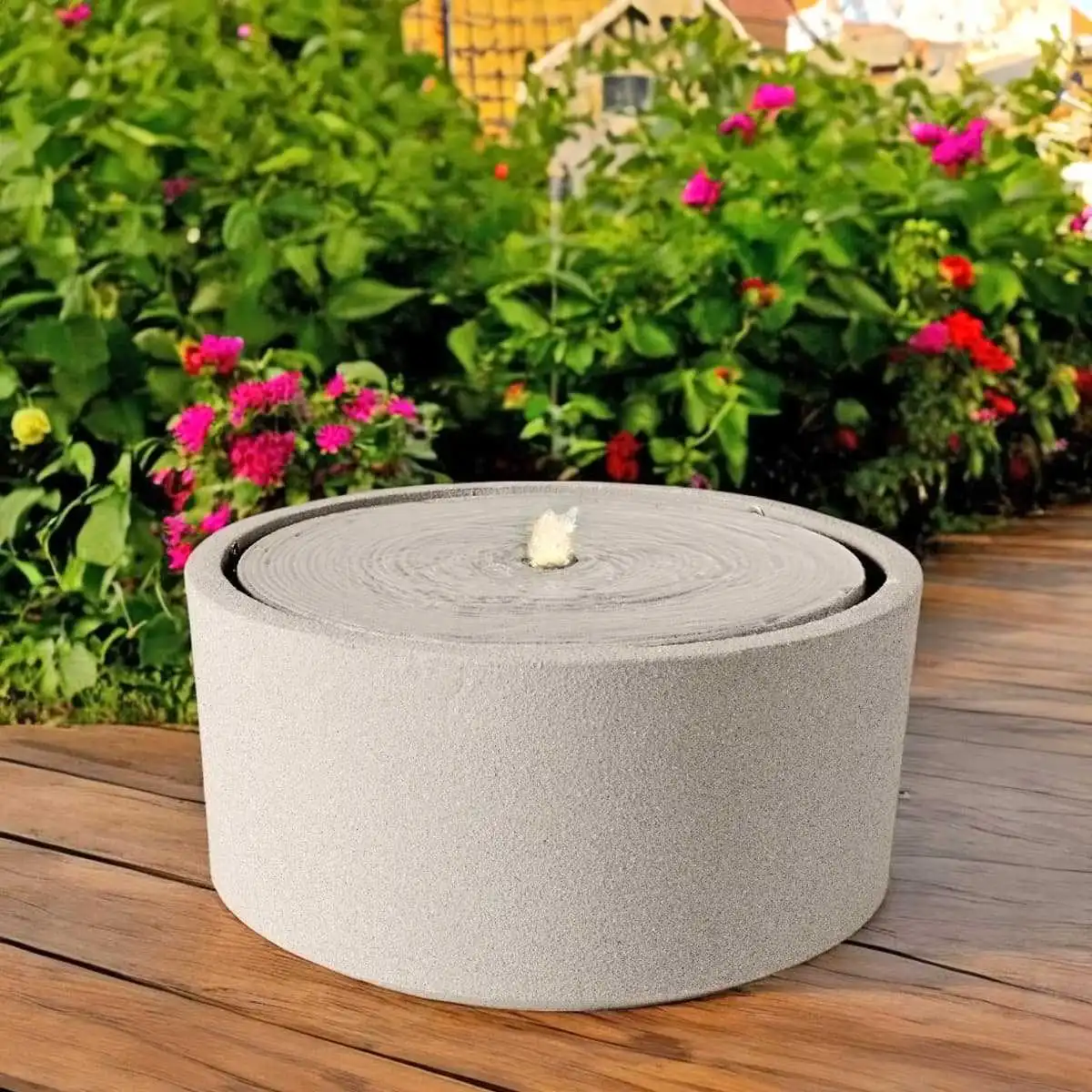 Plus qu'une fontaine, elle constitue un véritable objet de déco pour le jardin. Sa forme ronde fait penser à un petit bassin... idéal pour créer un jardin zen sans entretien.
