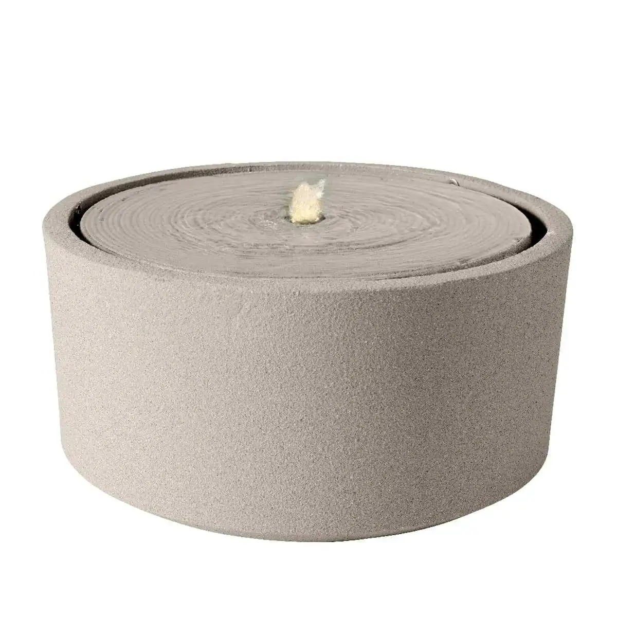 Fontaine de jardin ronde avec LED en plastique recyclé effet pierre brute - Sable - D.49 x H.25 cm